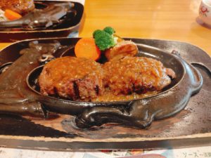 お昼には、静岡名物「さわやか」のげんこつハンバーグを食べに行きました。