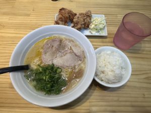 また、セットのからあげも結構でかいです。これは生姜が効いていて大満足な味わい。