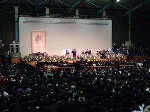 体育館の大きいこと。総長から賞をもらっているのが息子です