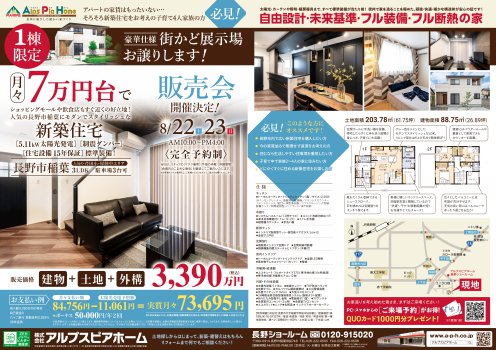また、販売会ではありますが、まだアルプスピアホームのお家をご覧いただいた事のない方、