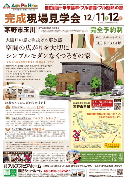 《完全予約制》《2日間限定》12/11(土)・12(日) 茅野市玉川にて完成現場見学会を開催します!