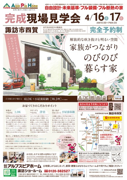 4/16(土)・17(日)【諏訪市四賀】にて完成現場見学会を開催します!