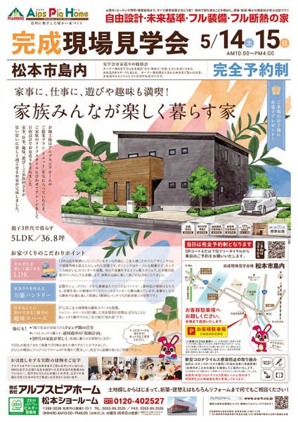 5/14(土)・15(日)【松本市島内】にて完成現場見学会を開催します!