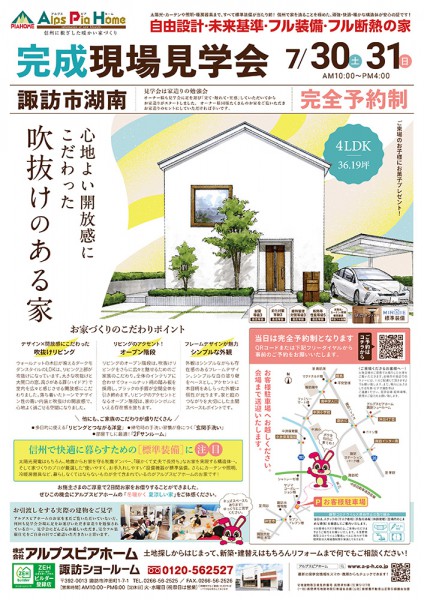 7/30(土)・31(日)【諏訪市湖南】にて完成現場見学会を開催します!