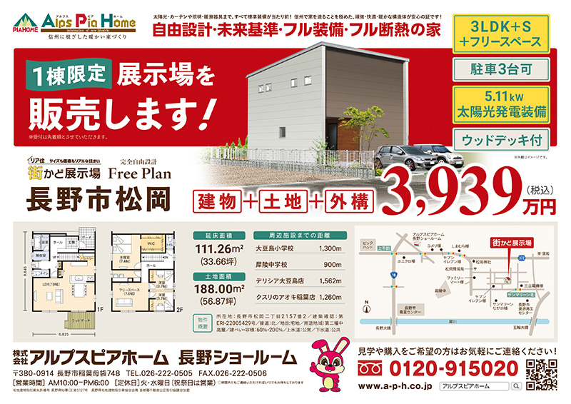 【長野市松岡】街かど展示場「完全自由設計 -Free Plan-」 いよいよグランドオープン!