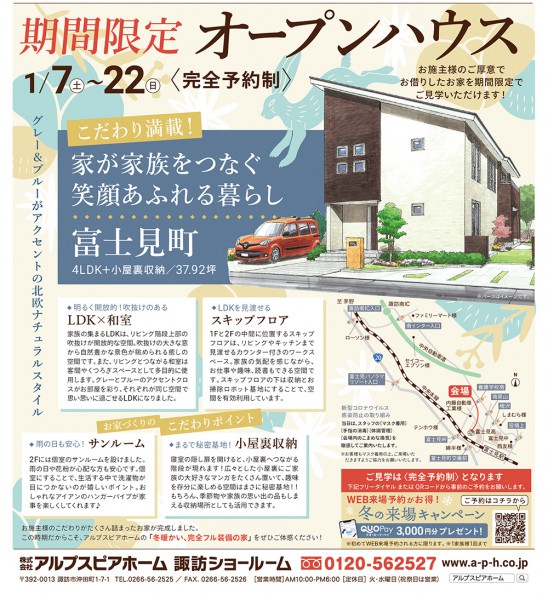 《期間限定》1/7(土)~1/22(日) 富士見町にてオープンハウスを開催!