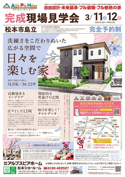 3/11(土)・12(日)【松本市島立】にて完成現場見学会を開催します!