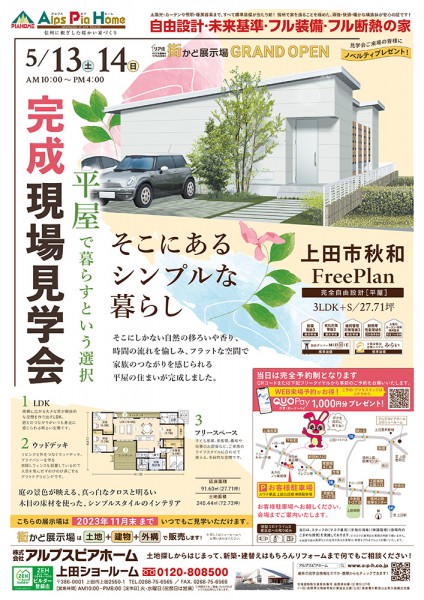 街かど展示場グランドオープン!完成現場見学会(上田市秋和)