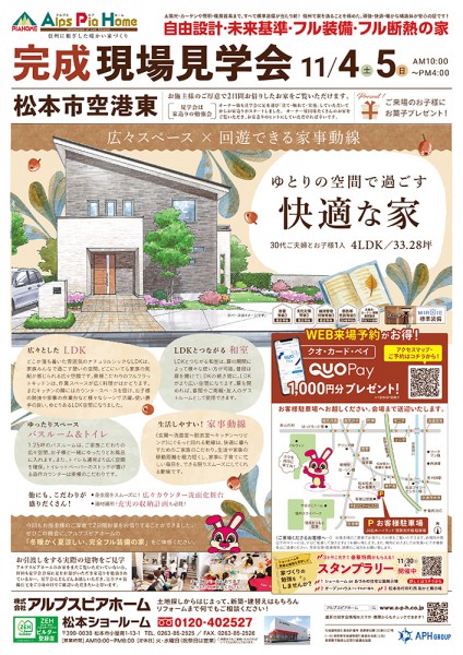 11/4(土)・5(日)【松本市空港東】にて完成現場見学会を開催します!