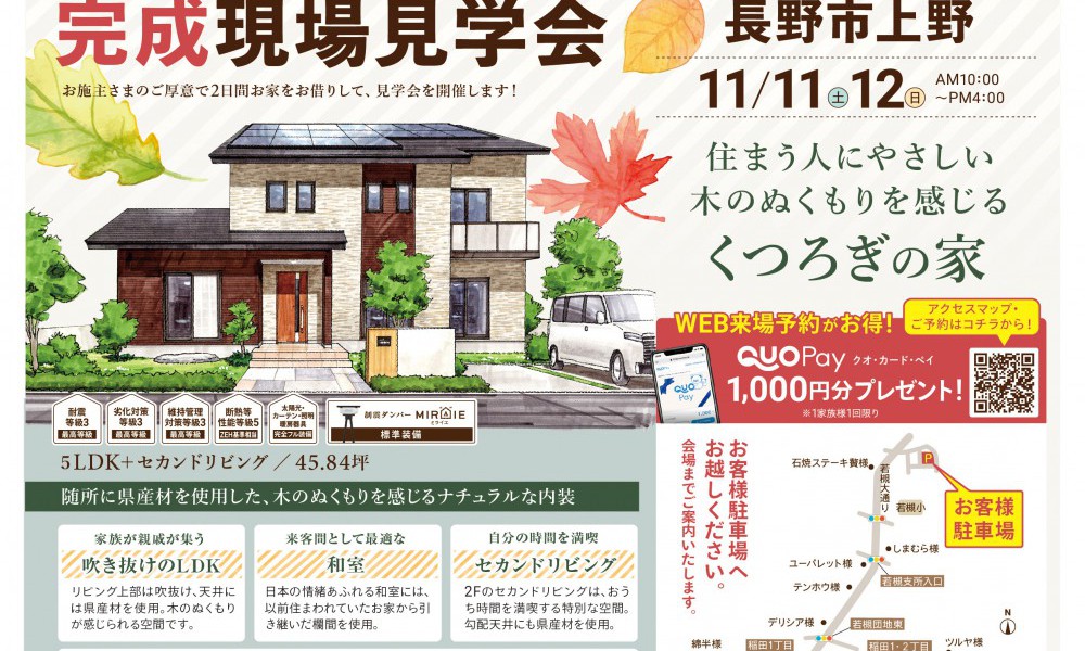 11/11(土)・12(日)【長野市上野】にて完成現場見学会を開催します!