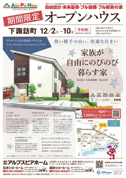 12/2(土)~10(日) 下諏訪町にてオープンハウスを開催!