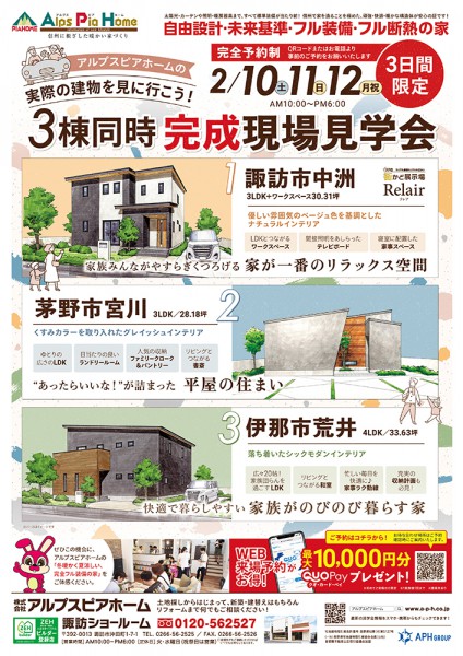 南信エリア3日間限定!3棟同時 完成現場見学会 開催