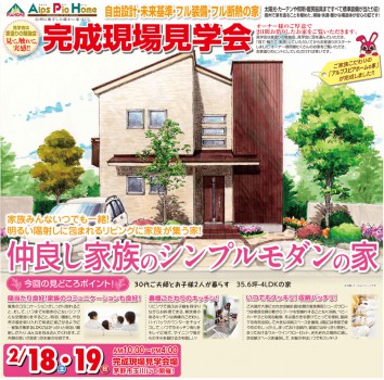 2/18(土)・19(日)の2日間、【茅野市玉川】にて、新築完成現場見学会を開催いたします。