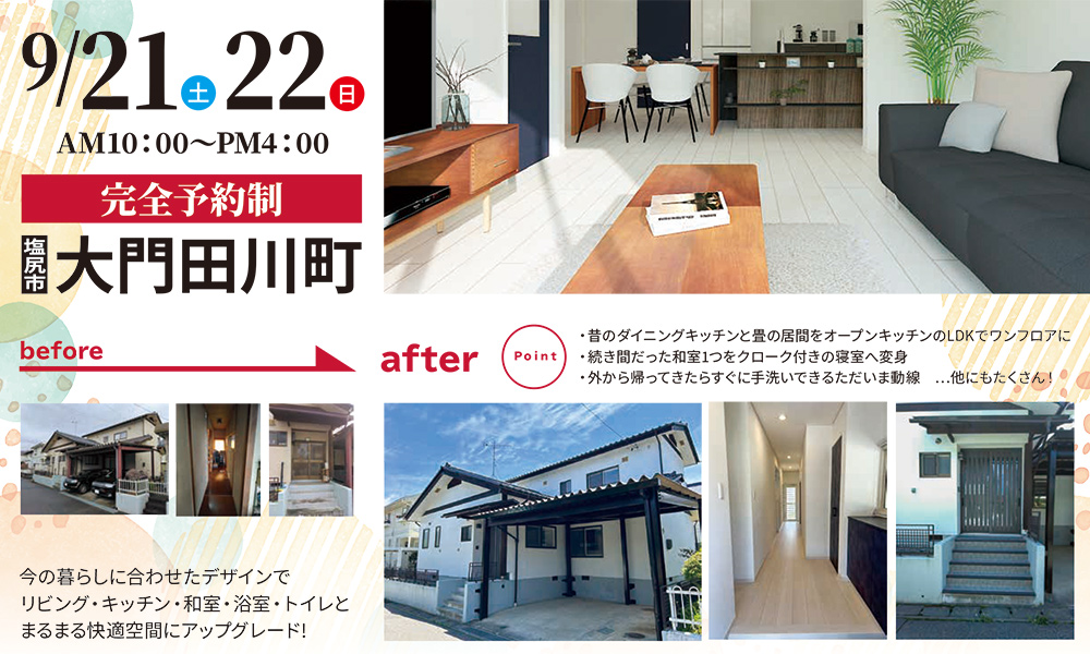 今の暮らしに合わせたデザインでリビング・キッチン・和室・浴室・トイレ…とまるまる快適空間にアップグレードしたリフォーム住宅をご覧いただけます。
