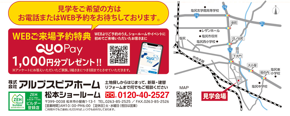 備考 | ※ゆっくりとご見学いただきたく、完全予約制とさせていただいております。 ※ご予約いただきましたら、アクセスマップを改めてご連絡差し上げます。 |