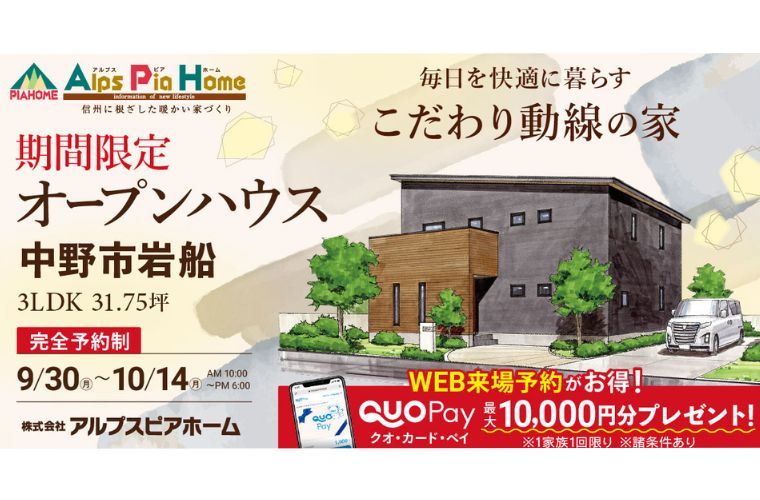 9/30(月)~10/14(月) 中野市岩船にてオープンハウスを開催!