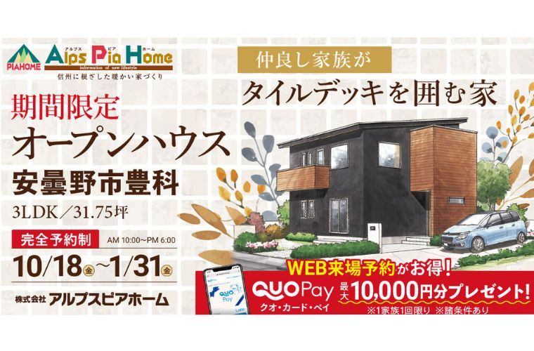 10/18(金)~1/31(金) 安曇野市豊科にてオープンハウスを開催!