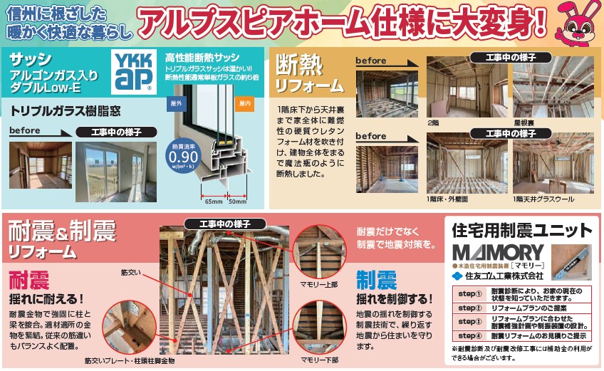 築42年の住宅を高断熱&耐震・制震仕様で信州の気候風土に適した暖かなお家に完全リフォーム!