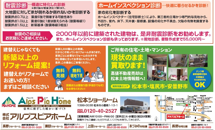 ぜひこの機会にアルプスピアホームの「完全リフォームの家」をご体感ください。
