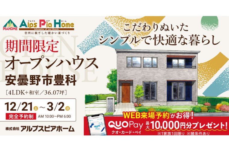 12/21(土)~3/2(日) 安曇野市豊科にてオープンハウスを開催!