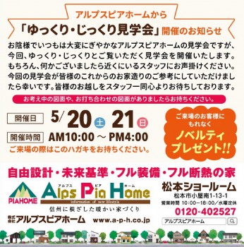 お陰様でいつもは大変にぎやかなアルプスピアホームの見学会ですが