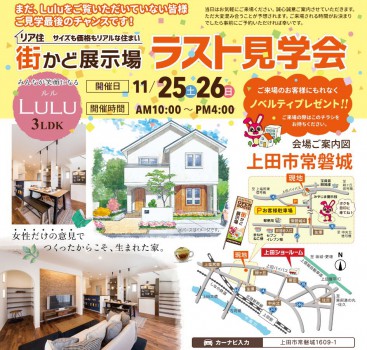 上田の街かど展示場「Lulu-ルル」ラスト見学会です!