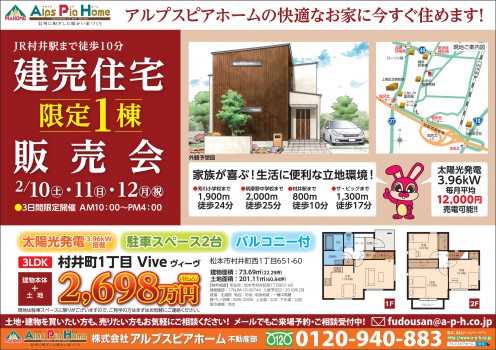 2/10(土)・11(日)・12(祝・月)松本市村井町西にて