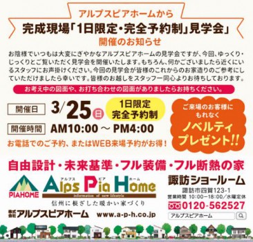 新しく始まる生活に、あると嬉しい機能がついた厳選された設備機器が標準装備されているのが魅力。カーテンや照明、暖房器具まで全てついて明確な価格であることがアルプスピアホームのお家です。本格的な春前だからこそ、まだまだ実感できるお家の暖かさを是非体感してください!