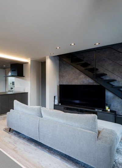 吹き抜けの解放感とシックモダンの気品が心地よい家