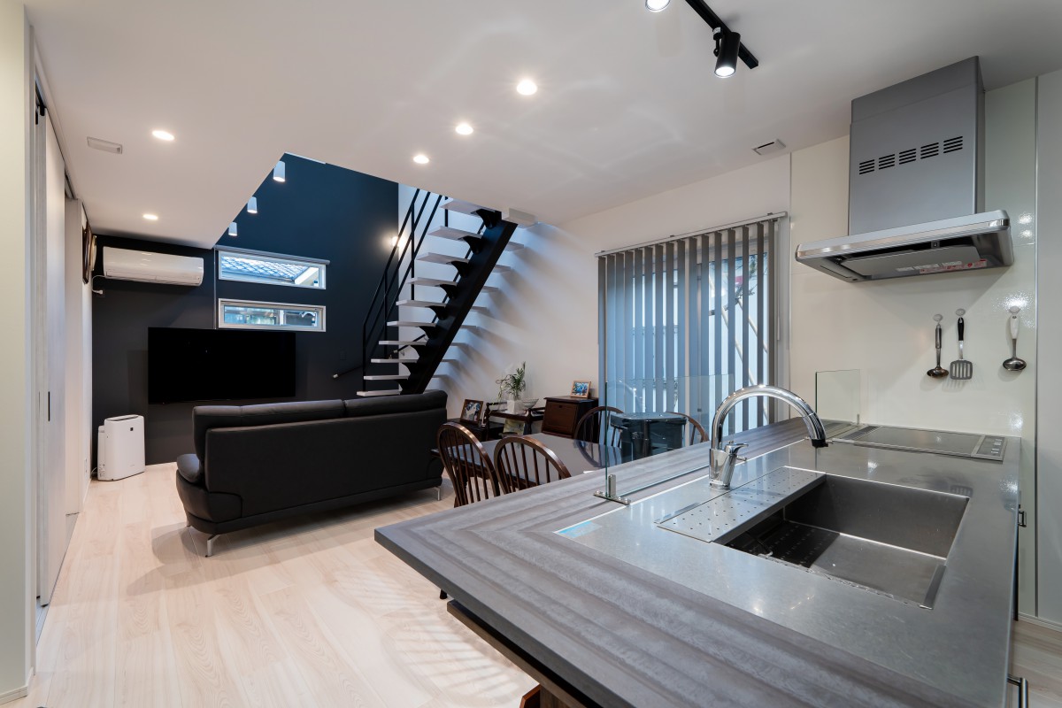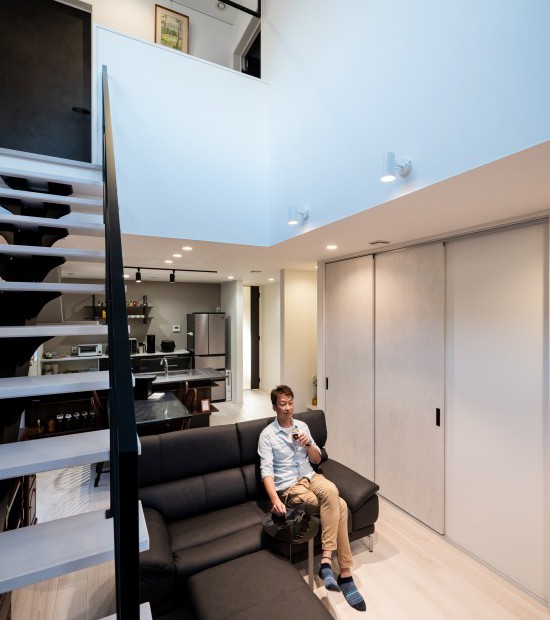 吹き抜けの解放感とシックモダンの気品が心地よい家