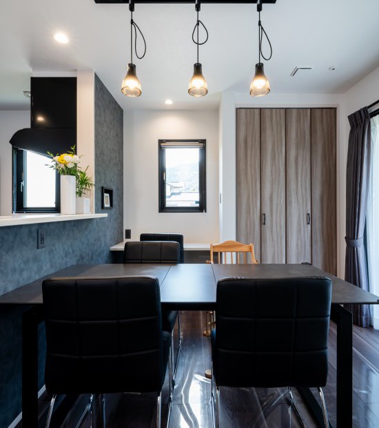 モノトーンを基調にしたシックな雰囲気のT様邸は、主に外観がご主人、内装が奥様の好みを反映させています。クロスを選んだり、床の色を決めたり、自分たちの思いが形になっていく過程がとても楽しかったと振り返ります。目を引くのが、広いタイルデッキが張り出したバーベキューテラス。晴れた日はビールを片手にバーベキューをするそうで、松本随一の花見の名所・弘法山が目の前という恵まれた立地にあって、「桜の季節がとても楽しみです」と話してくれました。