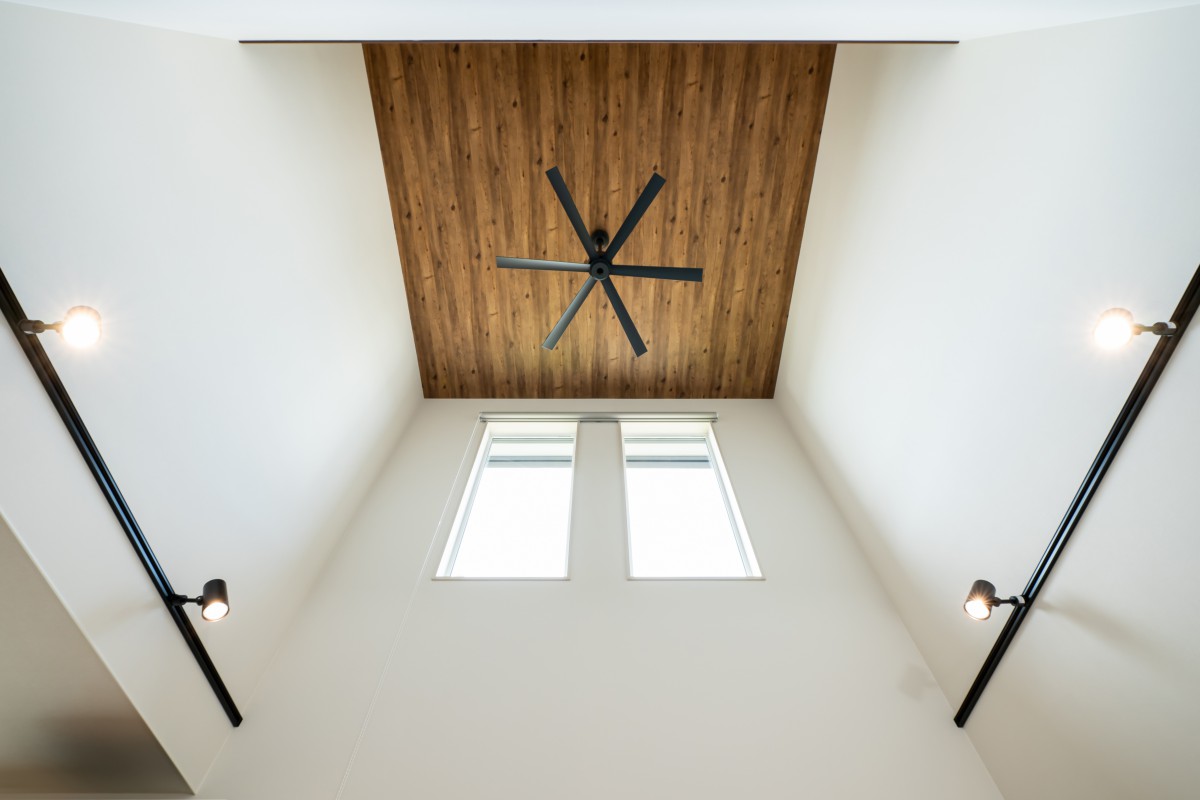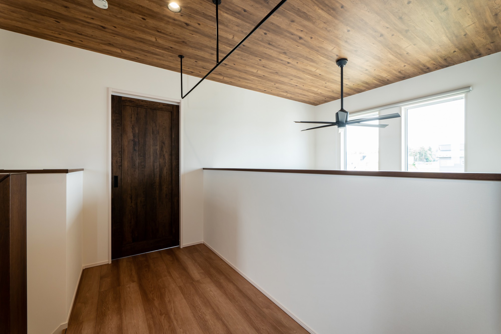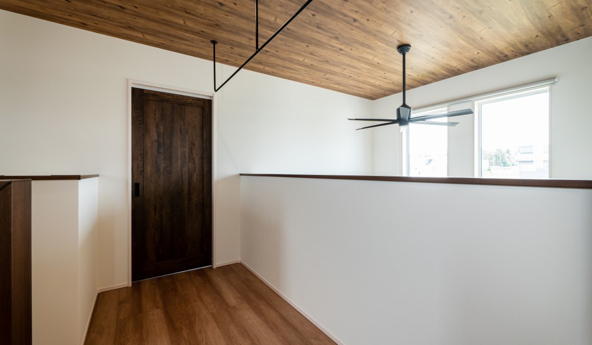 内装で最初に決めたのはこの木目天井。これを際立たせたくて、ドアを除く壁すべてを白で配色。