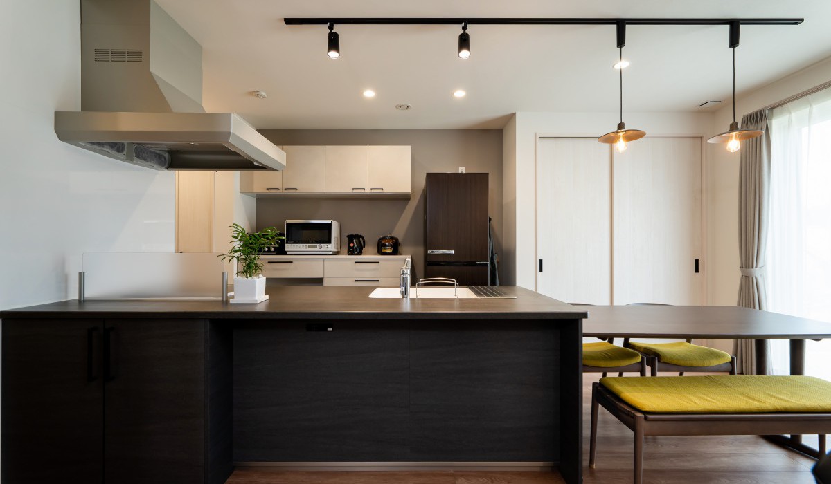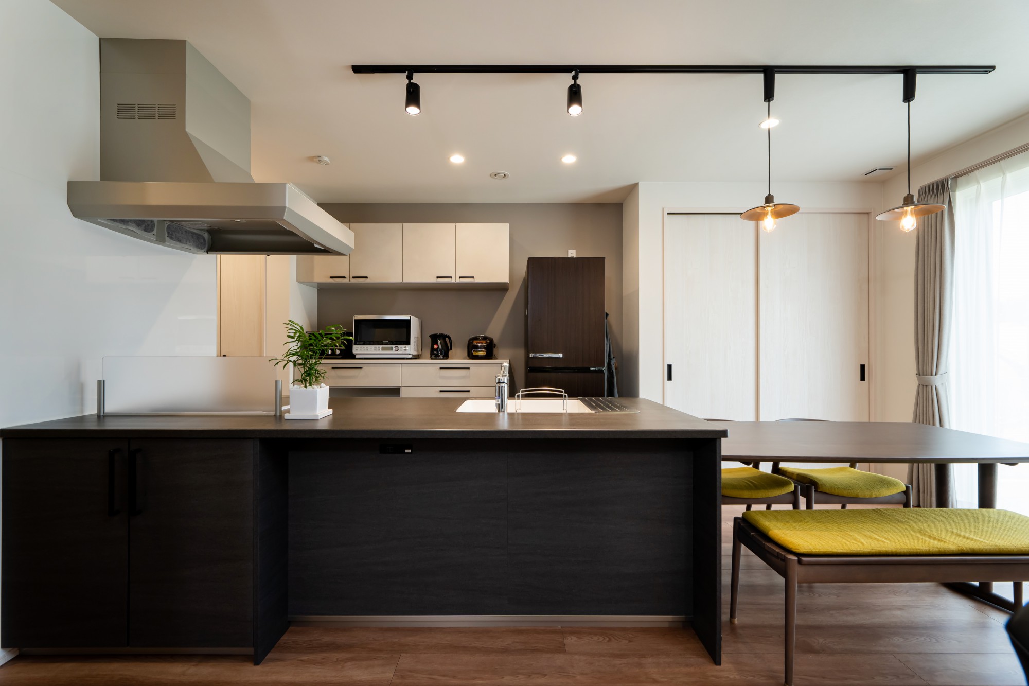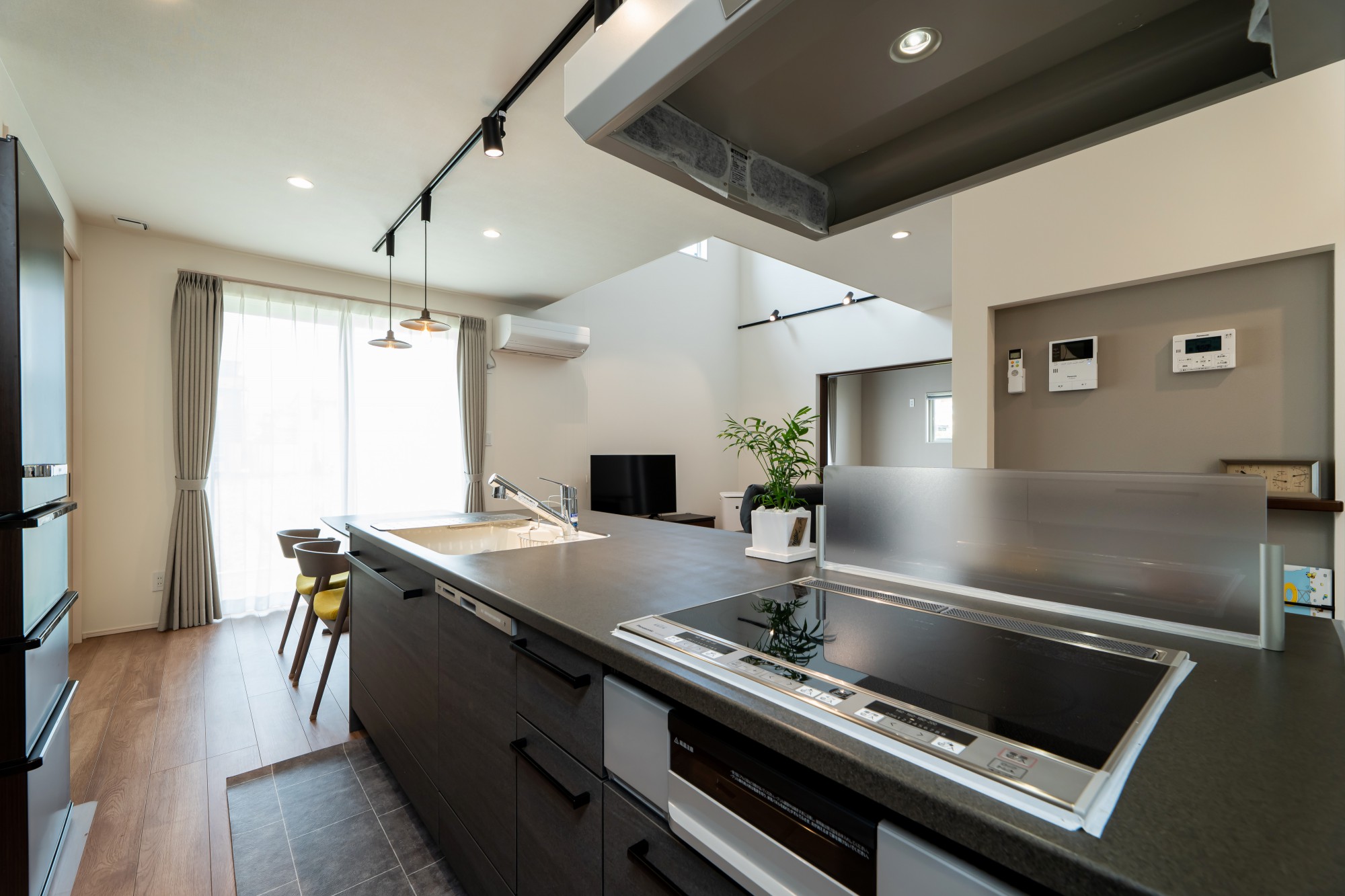 人気のアイランドキッチン+横並びのダイニングテーブル