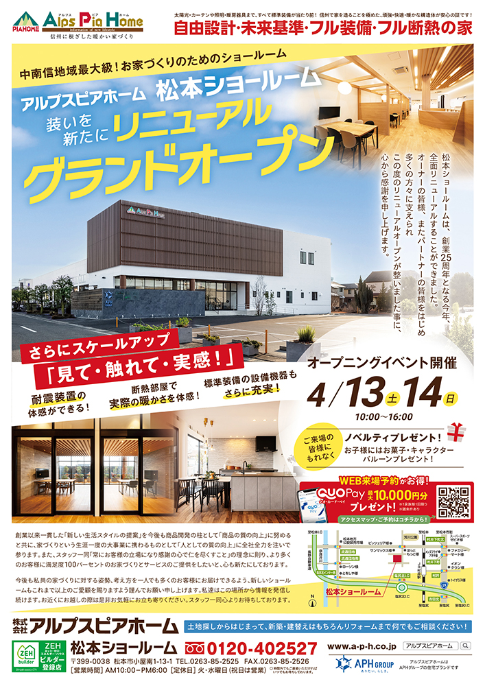 アルプスピアホーム 松本ショールームは、創業25周年となる今年、全面リニューアルをすることができました。