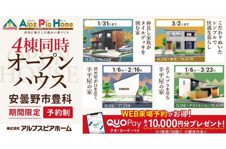 安曇野市豊科で4棟同時オープンハウスを開催します!
