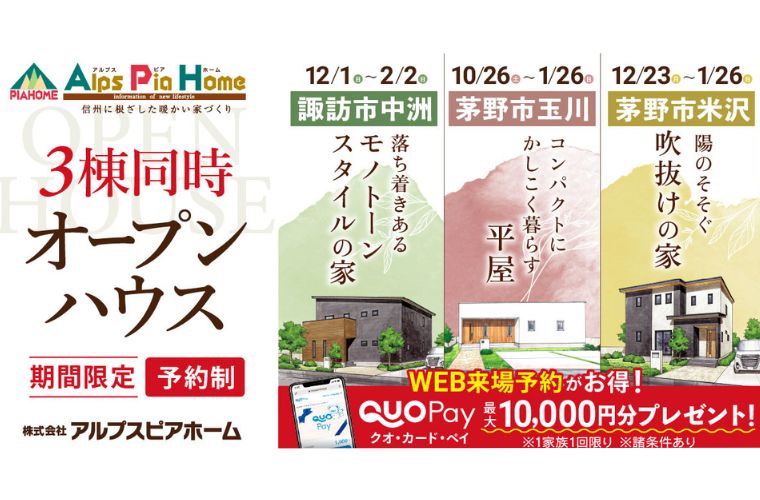 【諏訪市・茅野市】3棟同時オープンハウス 開催!