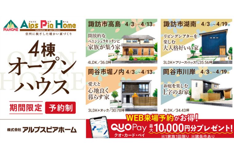 諏訪市・岡谷市で4棟オープンハウスを開催!
